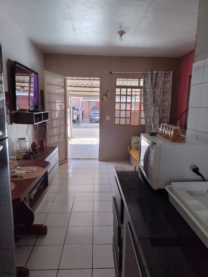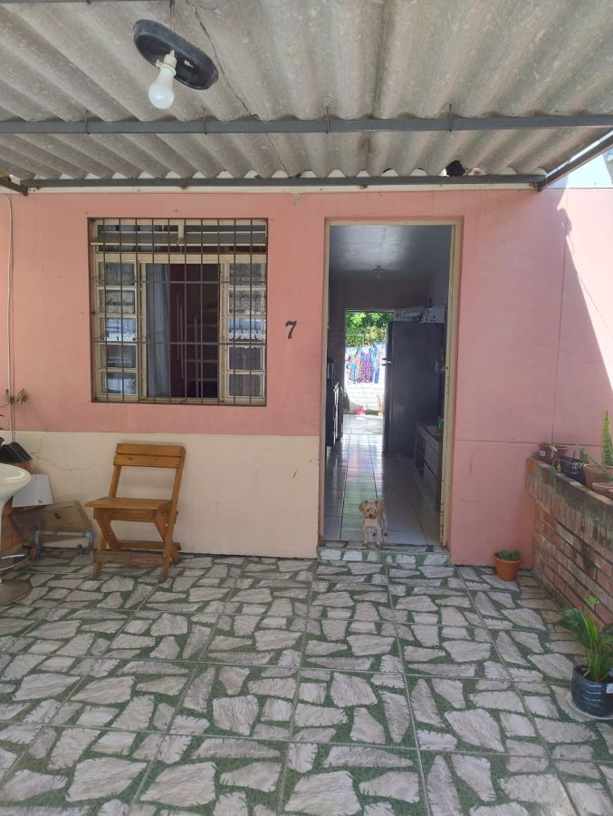 IMÓVEL CONTA COM 2 DORMITÓRIOS, SALA E COZINHA CONJUGADAS, BANHEIRO, PÁTIO NA FRENTE E NOS FUNDOS DO IMÓVEL E ESPAÇO DE GARAGEM COBERTA.